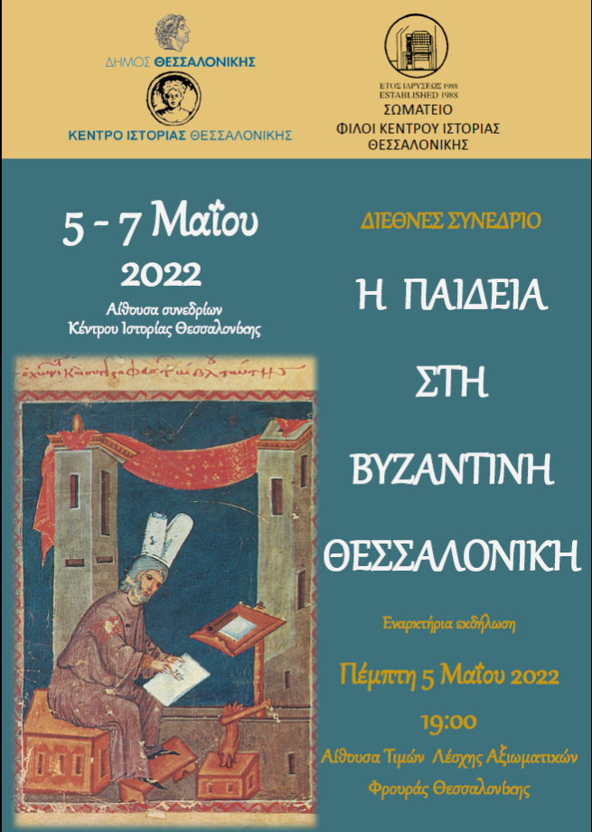 Ο Δήμος Θεσσαλονίκης και το Σωματείο “Φίλοι Κέντρου Ιστορίας Θεσσαλονίκης” οργανώνουν Διεθνές Συνέδριο με θέμα: ” Η Παιδεία στη Βυζαντινή Θεσσαλονίκη” από 5 έως 7 Μαίου 2022, στην Αίθουσα Συνεδριάσεων του Κέντρου Ιστορίας Θεσσαλονίκης.