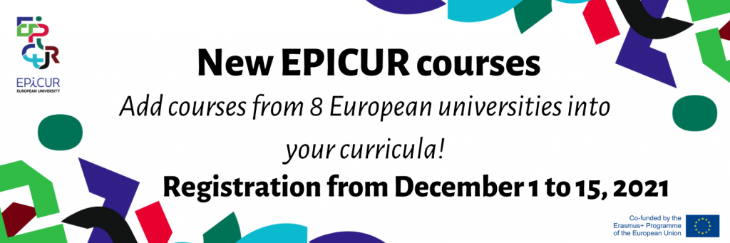 Στο πλαίσιο της συμμετοχής του ΑΠΘ στη Συμμαχία για το Ευρωπαϊκό Πανεπιστήμιο EPICUR, βρισκόμαστε στην ευχάριστη θέση να σας ανακοινώσουμε την έναρξη επιλογής μαθημάτων για το εαρινό εξάμηνο 2021-2022, που απευθύνονται στους φοιτητές των οκτώ πανεπιστημίων της Συμμαχίας EPICUR και τα οποία θα προσφερθούν διαδικτυακά. Οι φοιτητές του ΑΠΘ έχουν τη δυνατότητα να επιλέξουν μαθήματα που προσφέρονται από τα Πανεπιστήμια της Συμμαχίας, πλην αυτών που προσφέρονται από το ΑΠΘ.