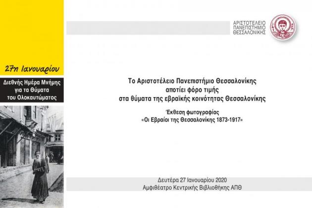 Η εκδήλωση θα πραγματοποιηθεί τη Δευτέρα 27 Ιανουαρίου 2020, στις 12:00, στο Αμφιθέατρο της Κεντρικής Βιβλιοθήκης του ΑΠΘ. Βασικό κομμάτι της εκδήλωσης θα αποτελέσει η Έκθεση φωτογραφίας με τίτλο «Οι Εβραίοι της Θεσσαλονίκης 1873-1917».