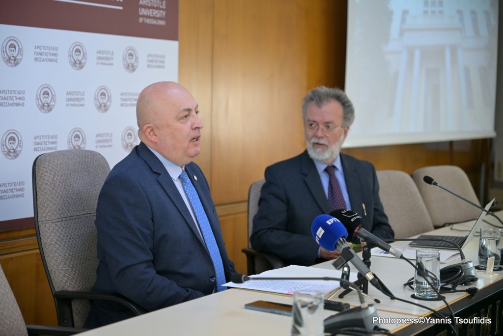 Ο Αντιπρύτανης Ακαδημαϊκών Υποθέσεων, Διά Βίου Μάθησης, Διεθνών Σχέσεων και Εξωστρέφειας, Καθηγητής Γεώργιος Τζέτζης τόνισε ότι το Αριστοτέλειο Πανεπιστήμιο Θεσσαλονίκης δεν αποτελεί μόνο έναν κορυφαίο ακαδημαϊκό και ερευνητικό θεσμό, αλλά λειτουργεί και ως μοχλός ανάπτυξης για την κοινωνία, την οικονομία και τον πολιτισμό. Υπογράμμισε ότι οι εκδηλώσεις για τα 100 χρόνια από την ίδρυση του ιδρύματος έχουν πολυδιάστατο χαρακτήρα, με στόχο τόσο την απόδοση τιμής στην ιστορική διαδρομή του ΑΠΘ όσο και την ανάδειξη της στρατηγικής του για το μέλλον.