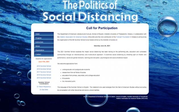 SUMMER SCHOOL 2021 INVITATION – “The Politics of Social Distancing”