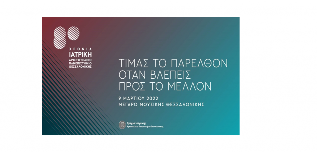 «Την επέτειο των 80 χρόνων από την ίδρυσή του θα εορτάσει το Τμήμα Ιατρικής του Αριστοτελείου Πανεπιστημίου Θεσσαλονίκης την Τετάρτη 9 Μαρτίου 2022, και ώρα 18:00-22:00, με μία λαμπρή εορταστική εκδήλωση που θα πραγματοποιηθεί στο Μέγαρο Μουσικής Θεσσαλονίκης. Η εκδήλωση είναι ανοιχτή για όλους όσους θήτευσαν στη μακρά διαδρομή της Ιατρικής Σχολής του ΑΠΘ, καθώς […]