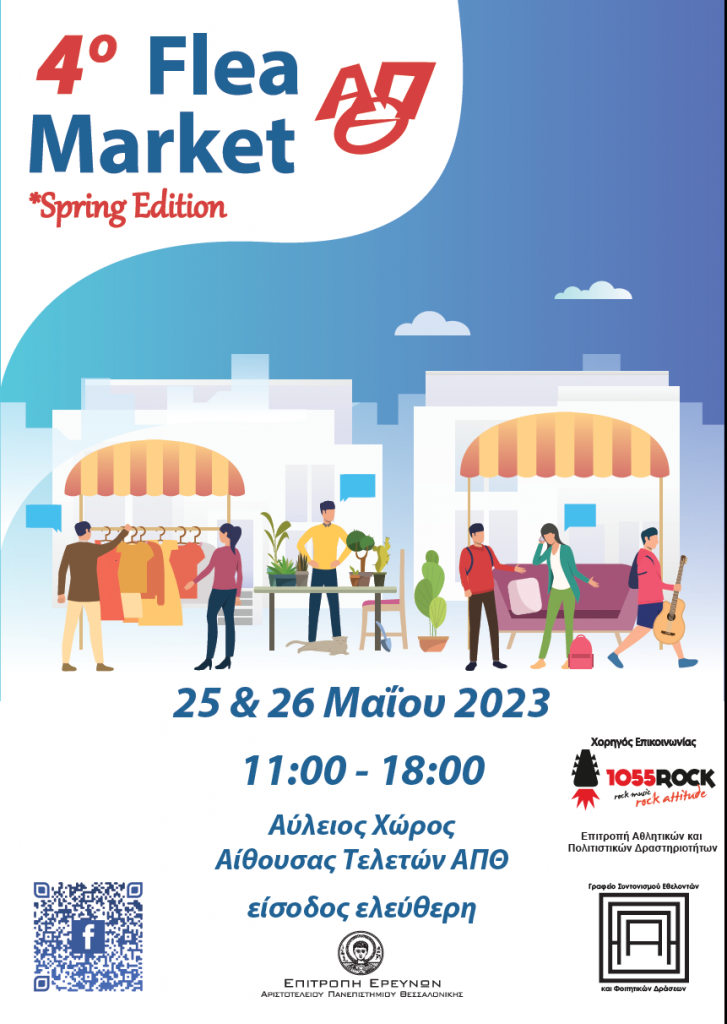 Στις 25 και 26 Μαίου 2023 θα πραγματοποιηθεί το 4ο Flea Market του ΑΠΘ στον αύλειο χώρο μπροστά από την Αίθουσα Τελετών του ΑΠΘΕίσοδος ελεύθερη