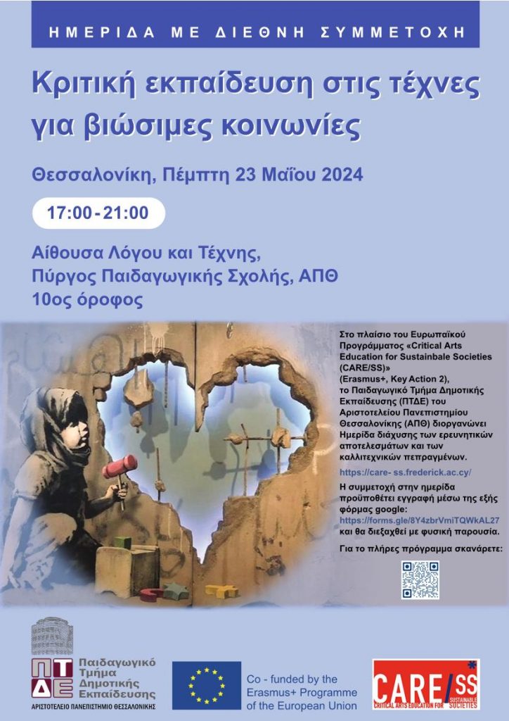 Ημερίδα με τίτλο: “Κριτική Εκπαίδευση στις Τέχνες για Βιώσιμες Κοινωνίες”, απο το Παιδαγωγικό Τμήμα Δημοτικής Εκπαίδευσης του ΑΠΘ
