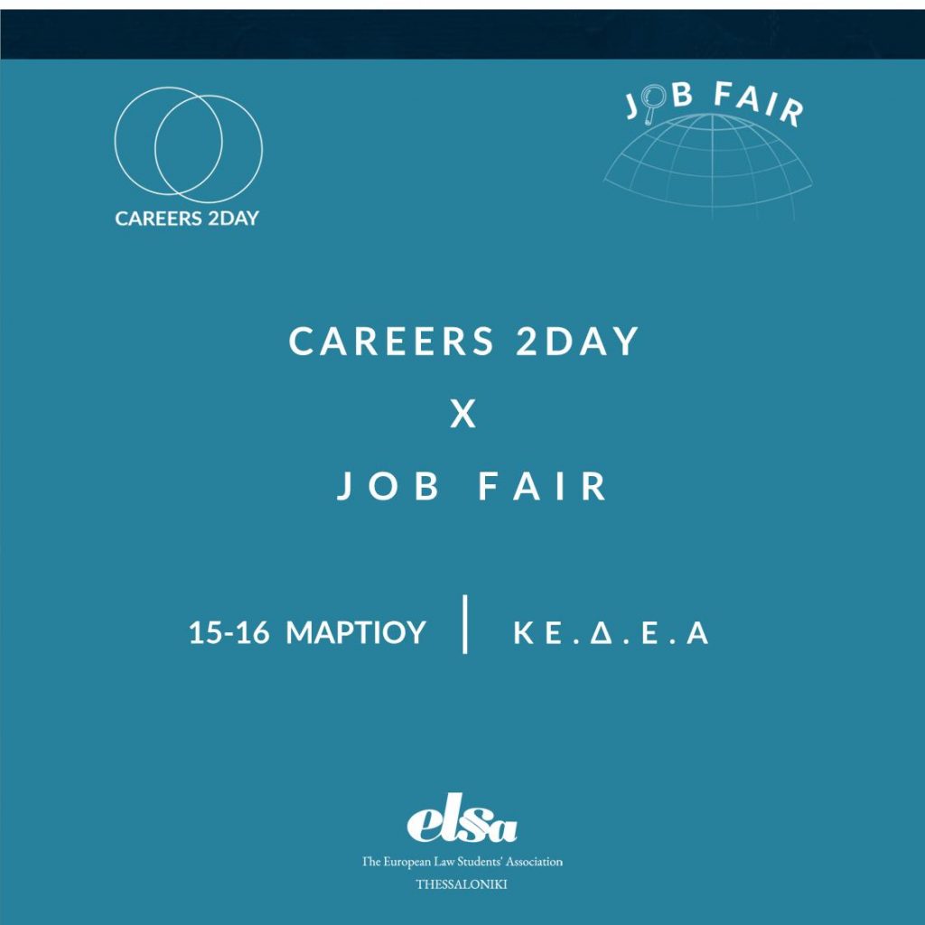 Η ELSA Thessaloniki βρίσκεται στην ευχάριστη θέση να ανακοινώνει την διοργάνωση του Careers 2Day x Job Fair, διήμερης εκδήλωσης που, σε πρώτη φάση, δίνει την ευκαιρία σε φοιτητές νομικής (και όχι μόνο) να αποκτήσουν πρόσβαση σε θεωρητικές γνώσεις και εφόδια (soft skills/hard skills), με ολοένα και μεγαλύτερη σημασία στα μονοπάτια της αγοράς εργασίας, και να […]