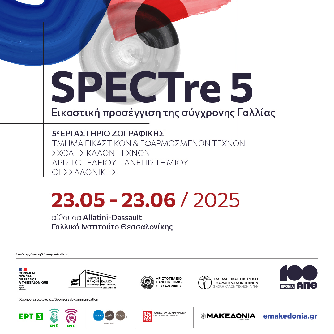 Εικαστική έκθεση με τίτλο: «SPECTre 5. Εικαστική προσέγγιση της σύγχρονης Γαλλίας», από το Τμήμα Εικαστικών και Εφαρμοσμένων Τεχνών, της Σχολής Καλών Τεχνών ΑΠΘ, σε συνεργασία με το Γαλλικό Ινστιτούτο Θεσσαλονίκης