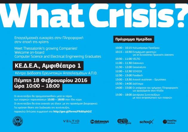 Το τμήμα Πληροφορικής του ΑΠΘ σε συνεργασία με τις πλέον ταχέως αναπτυσσόμενες εταιρίες στον κλάδο της Πληροφορικής στη Θεσσαλονίκη, διοργανώνει ημερίδα με παράλληλες ανοιχτές συνεντεύξεις φοιτητών, αποφοίτων, μεταπτυχιακών και διδακτορικών φοιτητών με κύριο αντικείμενο την Πληροφορική.