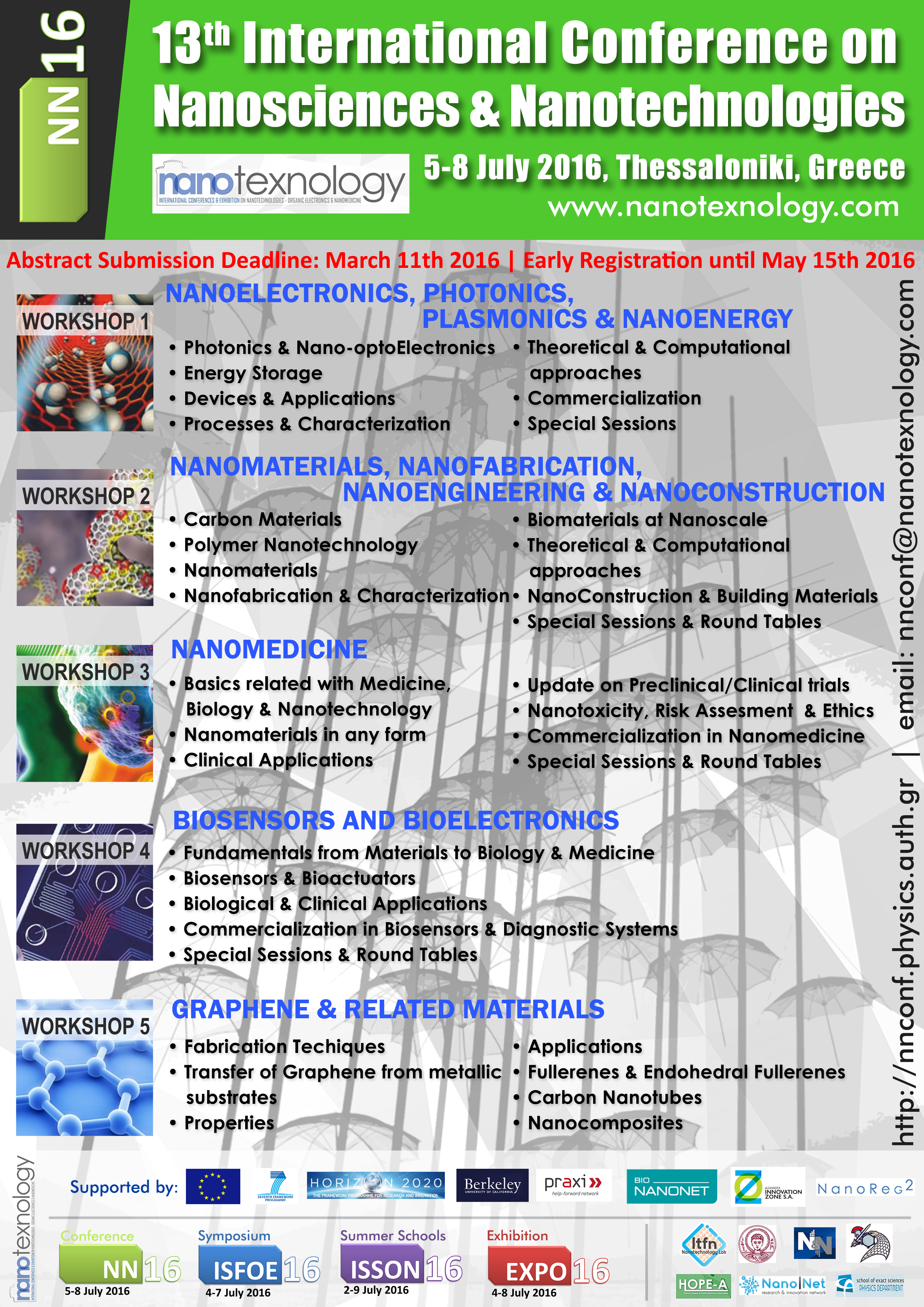 NN16 conference will be comprised of associated Workshops and Special Events, covering the latest developments in the fields of Nanosciences & Nanotechnologies. (Click bellow, to find out more about each Workshop):
