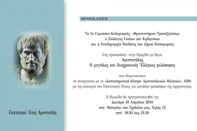 Ημερίδα με τίτλο «Αριστοτέλης ο μεγάλος και διαχρονικός Έλληνας φιλόσοφος»