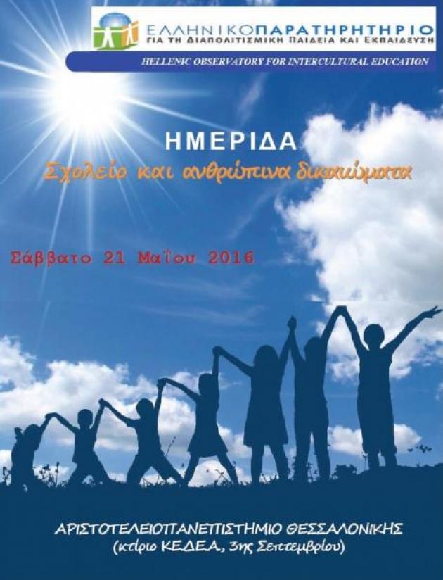 Λαμβάνοντας υπόψη το παραπάνω πλαίσιο, το Ελληνικό Παρατηρητήριο για τη Διαπολιτισμική Παιδεία και Εκπαίδευση (ΕΠΑΔΙΠΕ) οργανώνει Ημερίδα με θέμα «Σχολείο και ανθρώπινα δικαιώματα», η οποία θα πραγματοποιηθεί το Σάββατο 21 Μαΐου 2016 στο Κέντρο Διάδοσης Ερευνητικών Αποτελεσμάτων (ΚΕ.Δ.Ε.Α.) του Α.Π.Θ, από τις 9:30 έως τις 15:00. Στο πλαίσιο της Ημερίδας θα παρουσιαστούν διδακτικές/παιδαγωγικές δράσεις που έχουν εκπονήσει εκπαιδευτικοί όλων των βαθμίδων στη θεματική αυτή κατά την τρέχουσα σχολική χρονιά. Οι συγκεκριμένοι εκπαιδευτικοί συμμετέχουν σε ομότιτλο εκπαιδευτικό πρότζεκτ που το ΕΠΑΔΙΠΕ υλοποιεί πιλοτικά φέτος στην Κεντρική Μακεδονία.