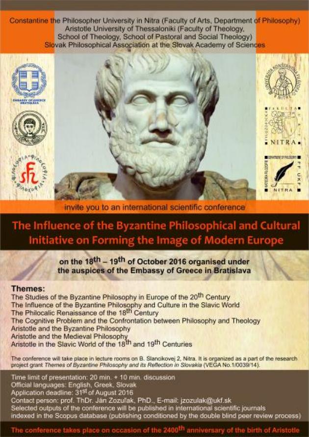 Διεθνές Συνέδριο Βυζαντινής Φιλοσοφίας με τίτλο: “The Influence of the Byzantine Philosophical and Cultural Initiative on forming the image of modern Europe”
