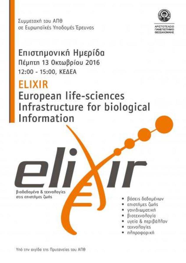 Το ΑΠΘ θα συμμετάσχει στο πρόγραμμα υποδομών ELIXIR (European life-sciences Infrastructure for biological Information) που αποτελεί δράση στο πλάισιο της Ενίσχυσης των Υποδομών Έρευνας και Καινοτομίας του ΕΣΠΑ 2014-2020.