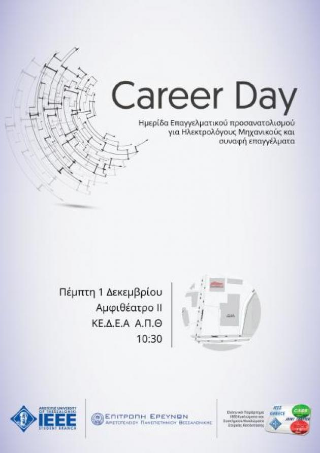 Το φοιτητικό παράρτημα IEEE του Αριστοτέλειου Πανεπιστημίου Θεσσαλονίκης, με τη στήριξη του καθηγητή κ. Αλκιβιάδη Χατζόπουλου, οργανώνει Ημέρα Καριέρας στη 1 Δεκεμβρίου 2016, στο ΚΕΔΕΑ.