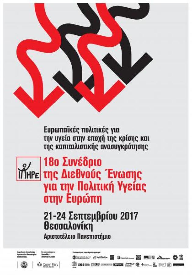 Την Πέμπτη 21 Σεπτεμβρίου 2017, στις 5:00 μ.μ., ξεκινά στο κτίριο της Παλιάς Φιλοσοφικής του Αριστοτελείου Πανεπιστημίου Θεσσαλονίκης το 18ο Συνέδριο της Διεθνούς Ένωσης Πολιτικής Υγείας στην Ευρώπη (International Association of Health Policy in Europe), με τίτλο «Ευρωπαϊκές πολιτικές υγείας στην εποχή της κρίσης και της καπιταλιστικής ανασυγκρότησης». Το συνέδριο διοργανώνεται από το Εργαστήριο Πρωτοβάθμιας Φροντίδας Υγείας, Γενικής Ιατρικής και Έρευνας Υπηρεσιών Υγείας, υπό την αιγίδα του Τμήματος Ιατρικής ΑΠΘ, και σε συνεργασία με το Πανεπιστήμιο Queen Mary του Λονδίνου.
