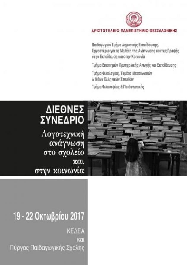 Στο Αριστοτέλειο Πανεπιστήμιο Θεσσαλονίκης διοργανώνεται, στις 19-22 Οκτωβρίου 2017, Διεθνές Συνέδριο με θέμα: «Λογοτεχνική ανάγνωση στο σχολείο και στην κοινωνία».