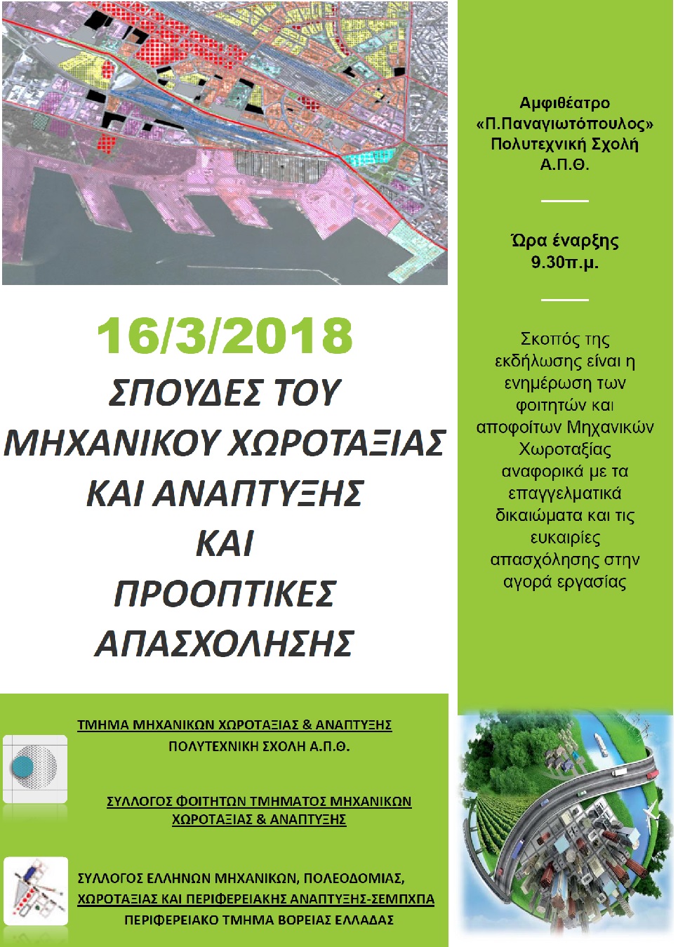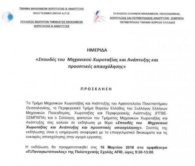 Ημερίδα με θέμα «Σπουδές του Μηχανικού Χωροταξίας και Ανάπτυξης και Προοπτικές Απασχόλησης».