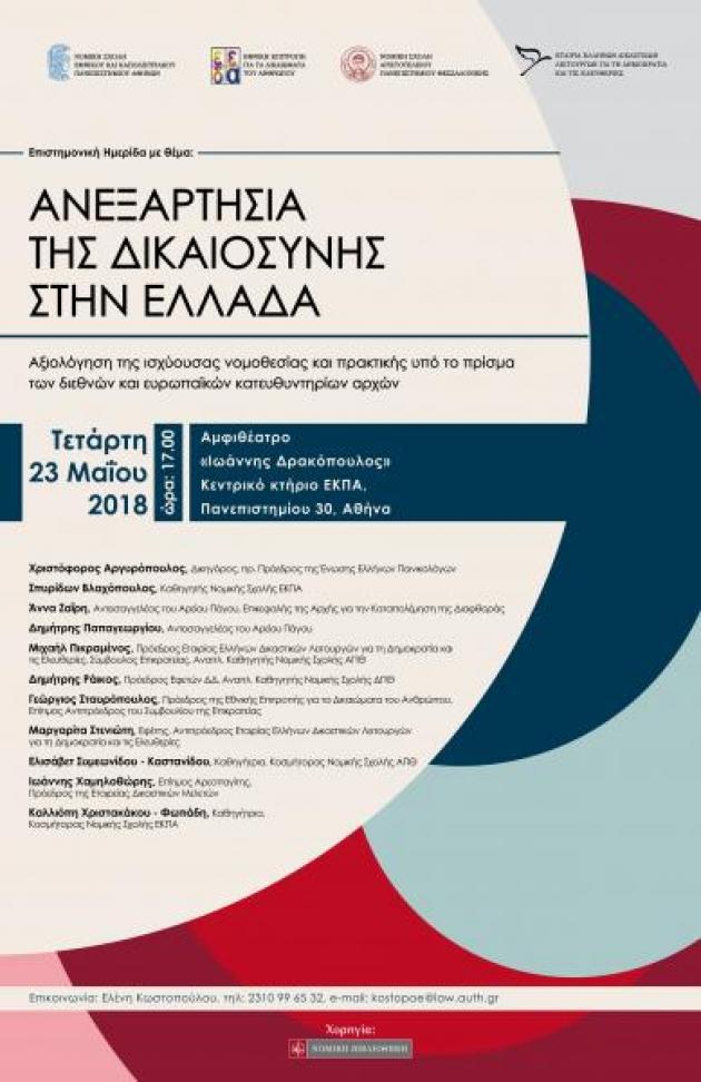 Επιστημονική ημερίδα με θέμα: ‘Ανεξαρτησία της Δικαιοσύνης στην Ελλάδα’