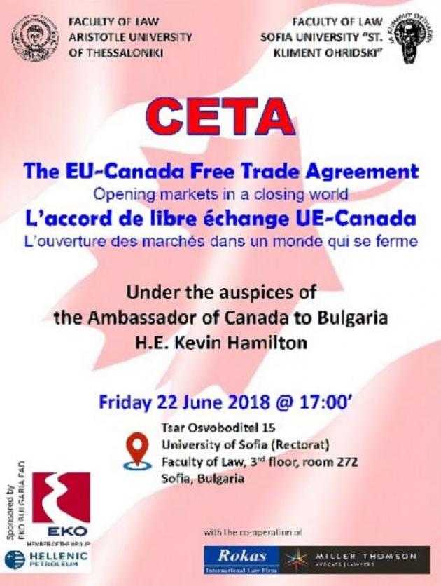 μεταξύ της Ε.Ε. και του Καναδά, την περίφημη CETA, στην Σόφια, στις 22 Ιουνίου 2018.