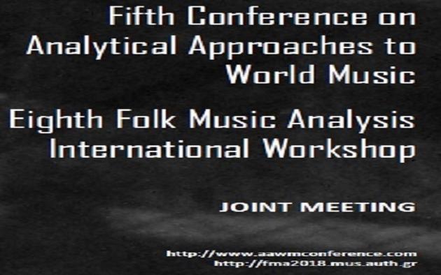 Το Τμήμα Μουσικών Σπουδών του Αριστοτέλειου Πανεπιστημίου, σε συνεργασία με τις μουσικολογικές εταιρείες AAWM (Analytical Approaches to World Music) και FMA (Folk Music Analysis), διοργανώνει στη Θεσσαλονίκη από 26 ως 29 Ιουνίου 2018 συνδυαστικό συνέδριο με τίτλο: 5o Διεθνές Συνέδριο για τις Αναλυτικές Προσεγγίσεις στις Μουσικές του Κόσμου (AAWM 2018) και 8ο Εργαστήριο Ανάλυσης Λαϊκής Μουσικής (FMA 2018).