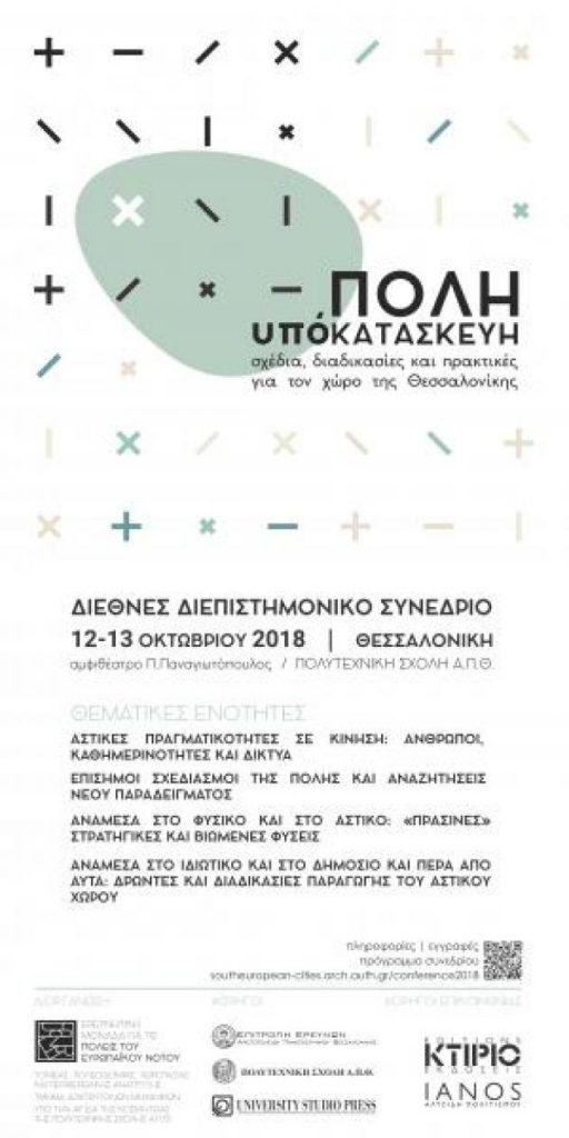 Σας προσκαλούμε στο Συνέδριο “Πόλη υπό κατασκευή: Σχέδια διαδικασίες και πρακτικές για τον χώρο της Θεσσαλονίκης” που θα διεξαχθεί στις 12 και 13 Οκτωβρίου στο αμφιθέατρο Π. Παναγιωτόπουλος της Πολυτεχνικής Σχολής ΑΠΘ.