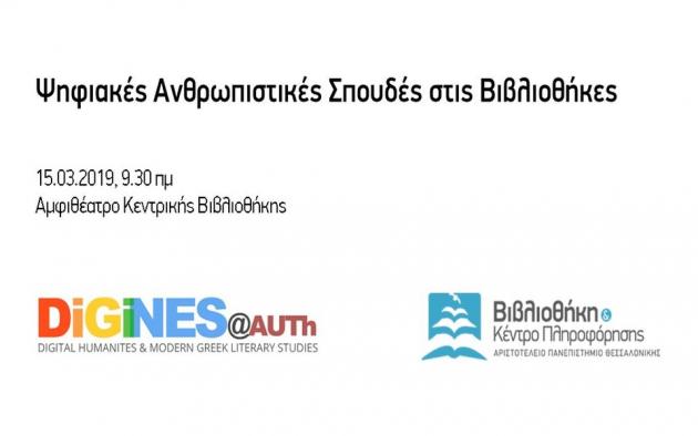 Η Προϊσταμένη Διεύθυνσης της Κεντρικής Βιβλιοθήκης Αικατερίνη Νάστα και η υπεύθυνη της ομάδας Ψηφιακών Ανθρωπιστικών Επιστημών & Νεοελληνικών Σπουδών “Digines” αναπληρώτρια καθηγήτρια Κατερίνα Τικτοπούλου σας προσκαλούν στην ημερίδα με τίτλο: Ψηφιακές Ανθρωπιστικές Σπουδές στις Βιβλιοθήκες.