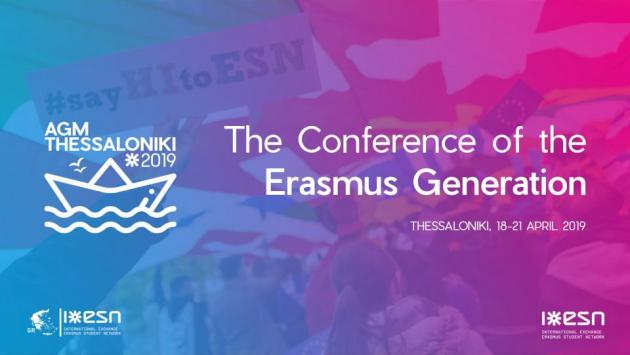 Το Δίκτυο Φοιτητών Erasmus (Erasmus Student Network – ESN) της Ελλάδος, με τη στήριξη του Αριστοτελείου Πανεπιστημίου Θεσσαλονίκης, διοργανώνει για πρώτη φορά το μεγαλύτερο συνέδριο φοιτητών για το Erasmus, την Ετήσια Γενική Συνέλευση του Δικτύου (Annual General Meeting – AGM) στη Θεσσαλονίκη, στις 18-21 Απριλίου.