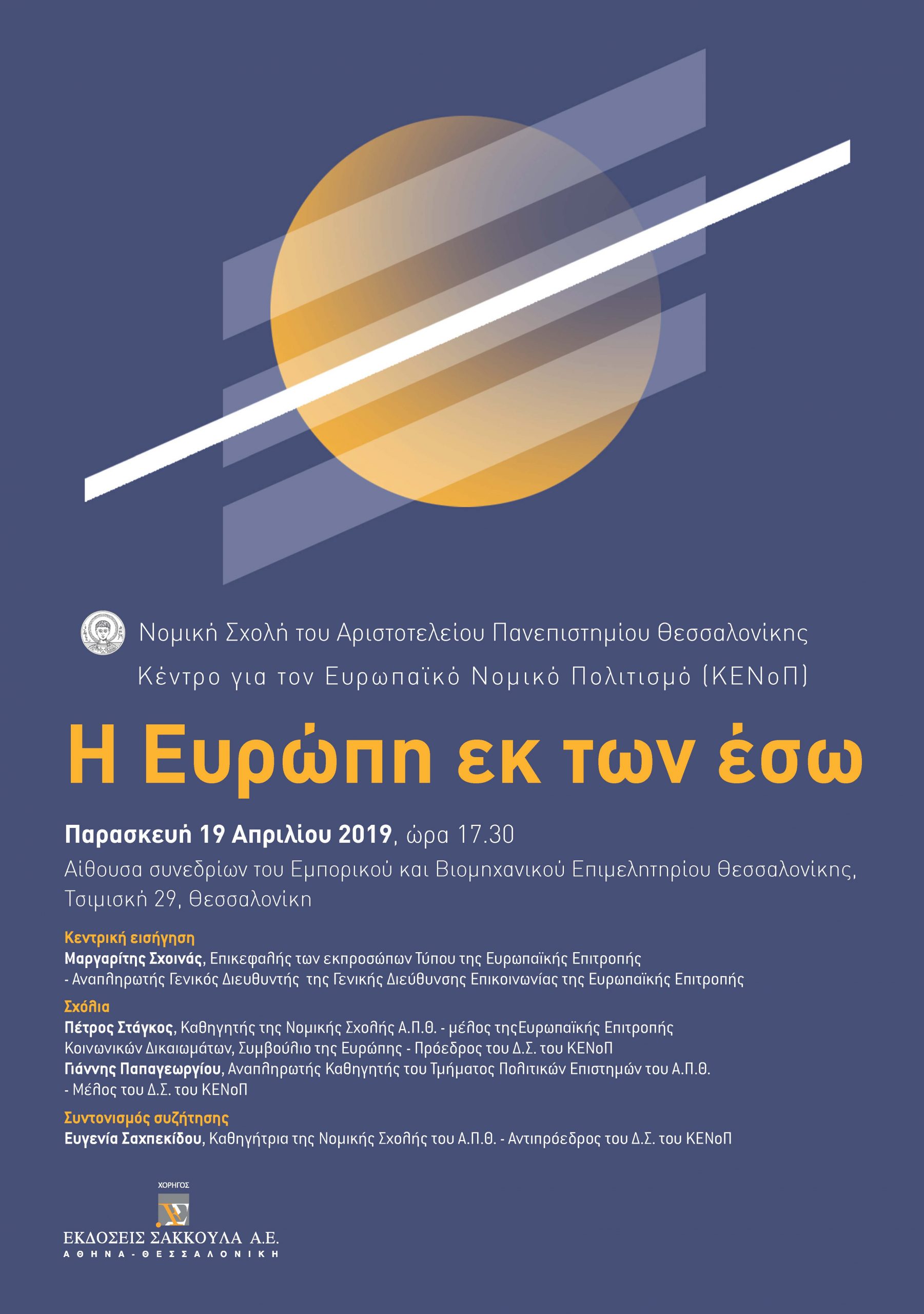 Το Κέντρο για τον Ευρωπαϊκό Νομικό Πολιτισμό και η Νομική Σχολή του Α.Π.Θ. διοργανώνουν Επιστημονική Ημερίδα με θέμα