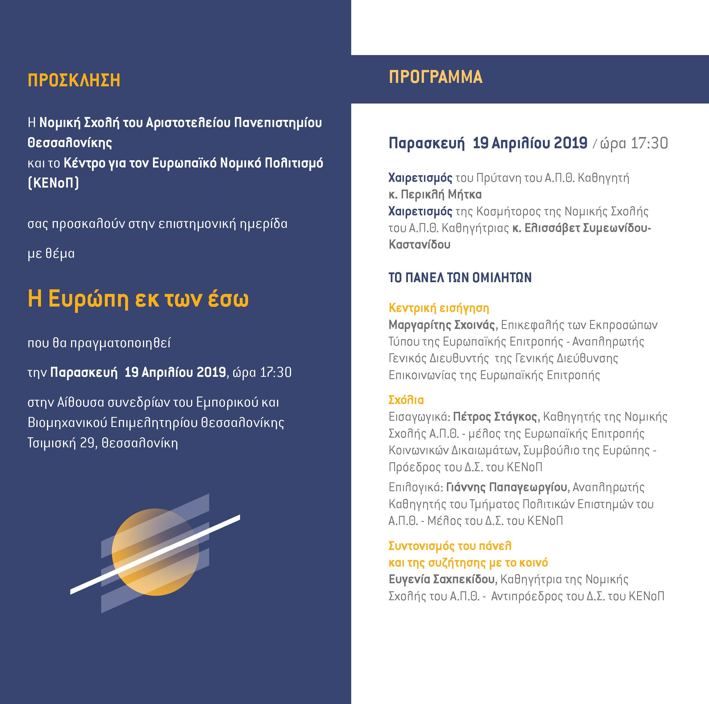 Επιστημονική Ημερίδα με θέμα «Η Ευρώπη εκ των έσω»