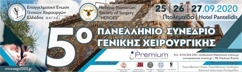 το 5ο Πανελλήνιο Συνέδριο της Επαγγελματικής Ένωσης Γενικών Χειρουργών Ελλάδος, στις 25-27 Σεπτεμβρίου 2020 στην πόλη της Πτολεμαΐδας, στο ξενοδοχείο «Pantelidis».