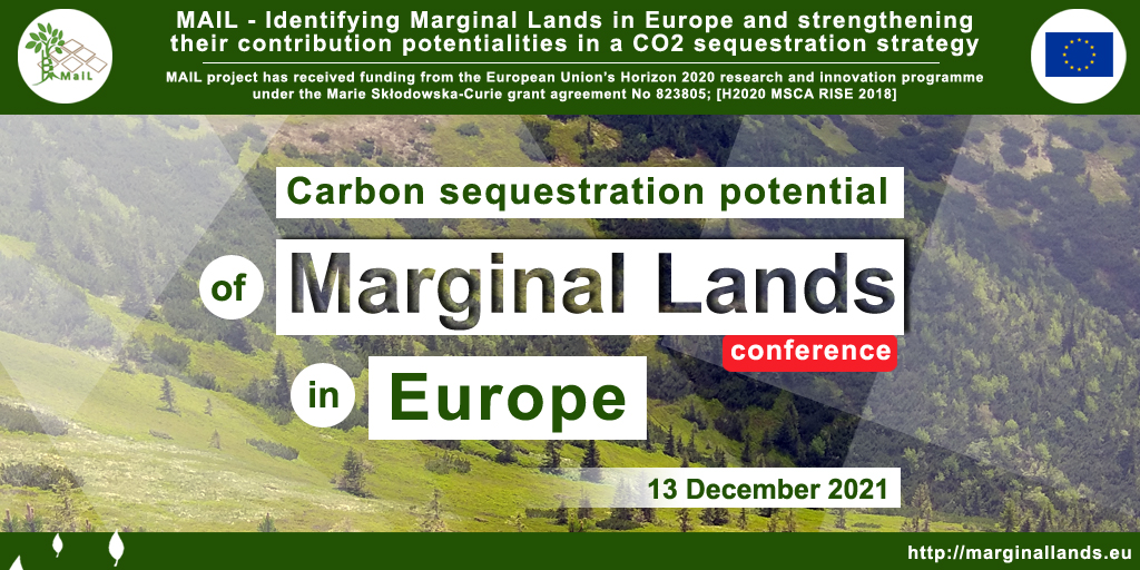 Το ερευνητικό πρόγραμμα MAIL “Identifying Marginal Lands in Europe and strengthening their contribution potentialities in a CO2 sequestration strategy” σας προσκαλεί στο διαδικτυακό συνέδριο με τίτλο “Carbon sequestration potential of Marginal Lands in Europe” που θα διεξαχθεί τη Δευτέρα 13 Δεκεμβρίου 2021.