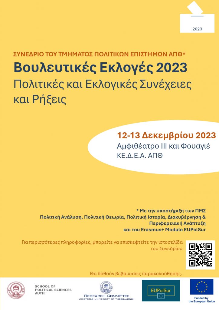 Διήμερο συνέδριο «Βουλευτικές εκλογές 2023: πολιτικές και εκλογικές συνέχειες και ρήξεις»