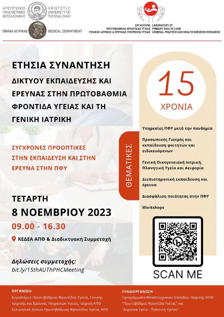 Υπεύθυνος Επικοινωνίας: Εμμανουήλ Σμυρνάκης Αν. Καθηγητής Πρωτοβάθμιας Φροντίδας Υγείας και Ιατρικής Εκπαίδευσης, Τμήμα Ιατρικής ΑΠΘ