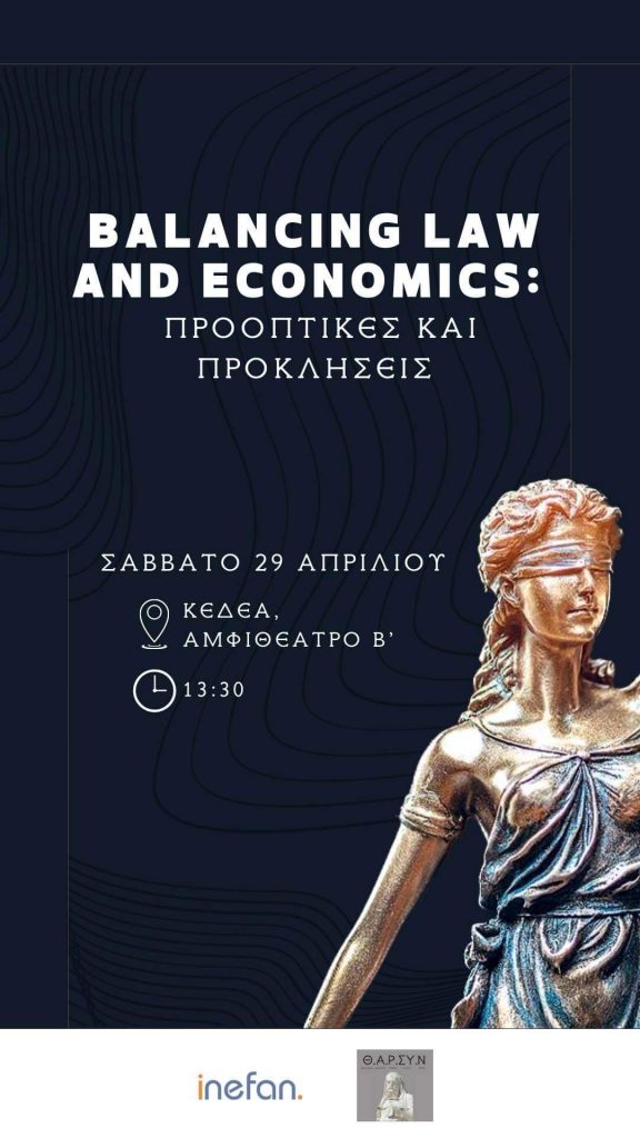 Ο Ρητορικός Όμιλος της Νομικής σχολής ΑΠΘ και το Σωματείο Οικονομολόγων “Inefan” διοργανώνουν Επιστημονική Ημερίδα με τίτλο: “Balancing law and economics: προκλήσεις και προοπτικές”