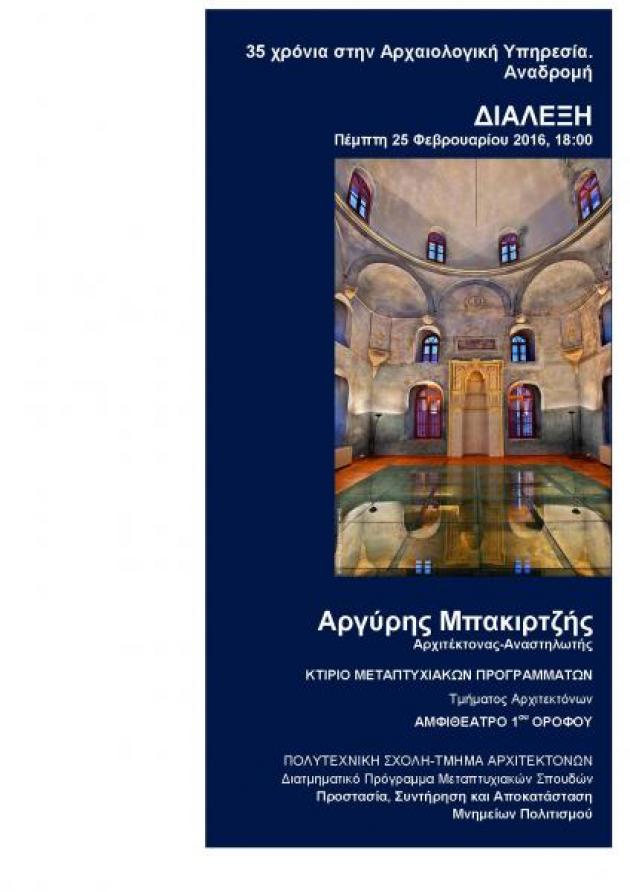 σας προσκαλεί στη διάλεξη του Αρχιτέκτονα-Αναστηλωτή Αργύρη Μπακιρτζή