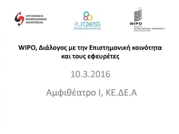 ‘WIPO, Διάλογος με την Επιστημονική κοινότητα και τους εφευρέτες’
