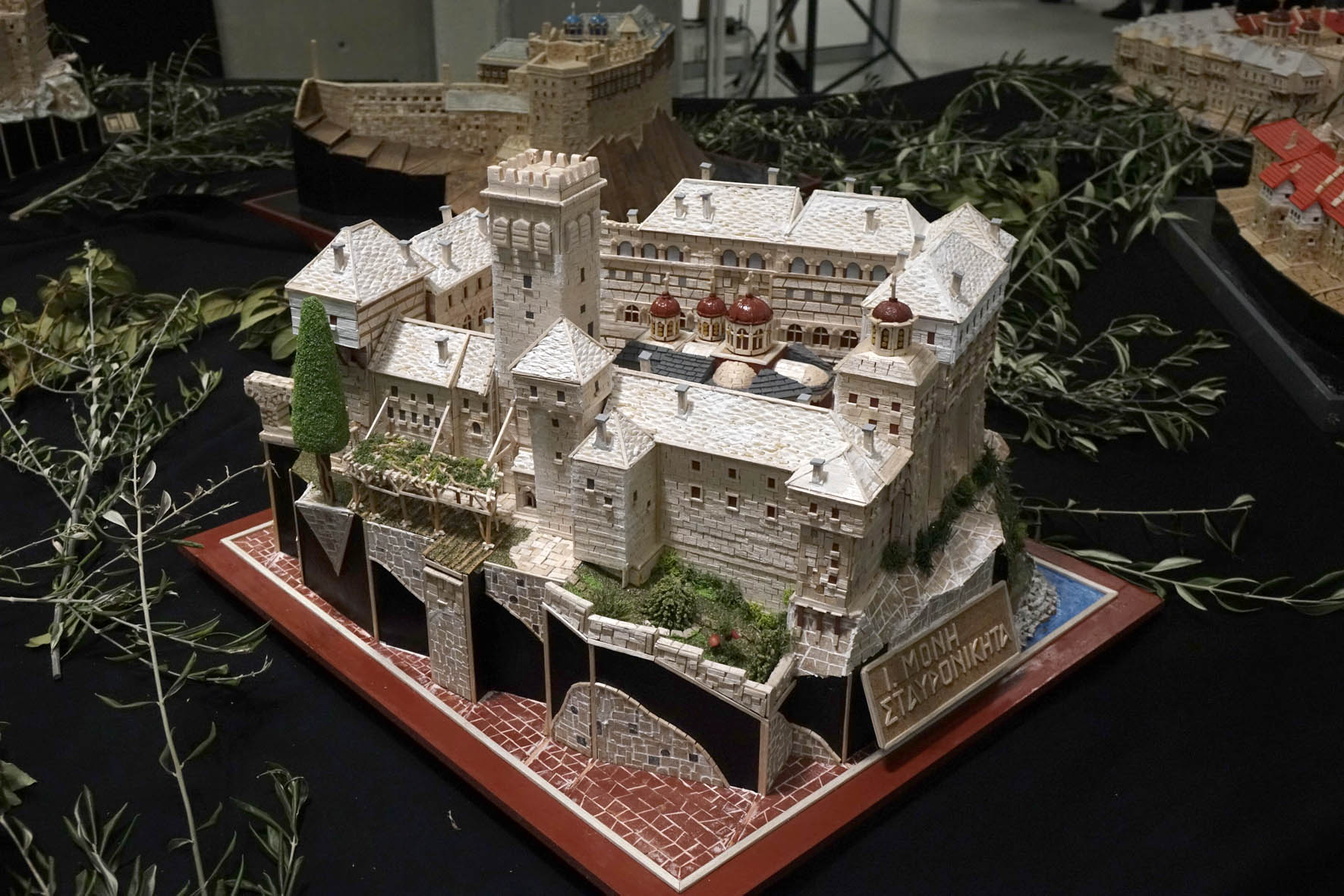 Ολόκληρη η Αθωνική Πολιτεία με τα είκοσι ιστορικά μοναστήρια της κατασκευάστηκε από μικρά κομμάτια ξύλου μπάλσα όπως βλέπουμε στο  τρίγλωσσο (ελληνικά, αγγλικά, ρωσικά) βιβλίο που συνοδεύει την Έκθεση.
