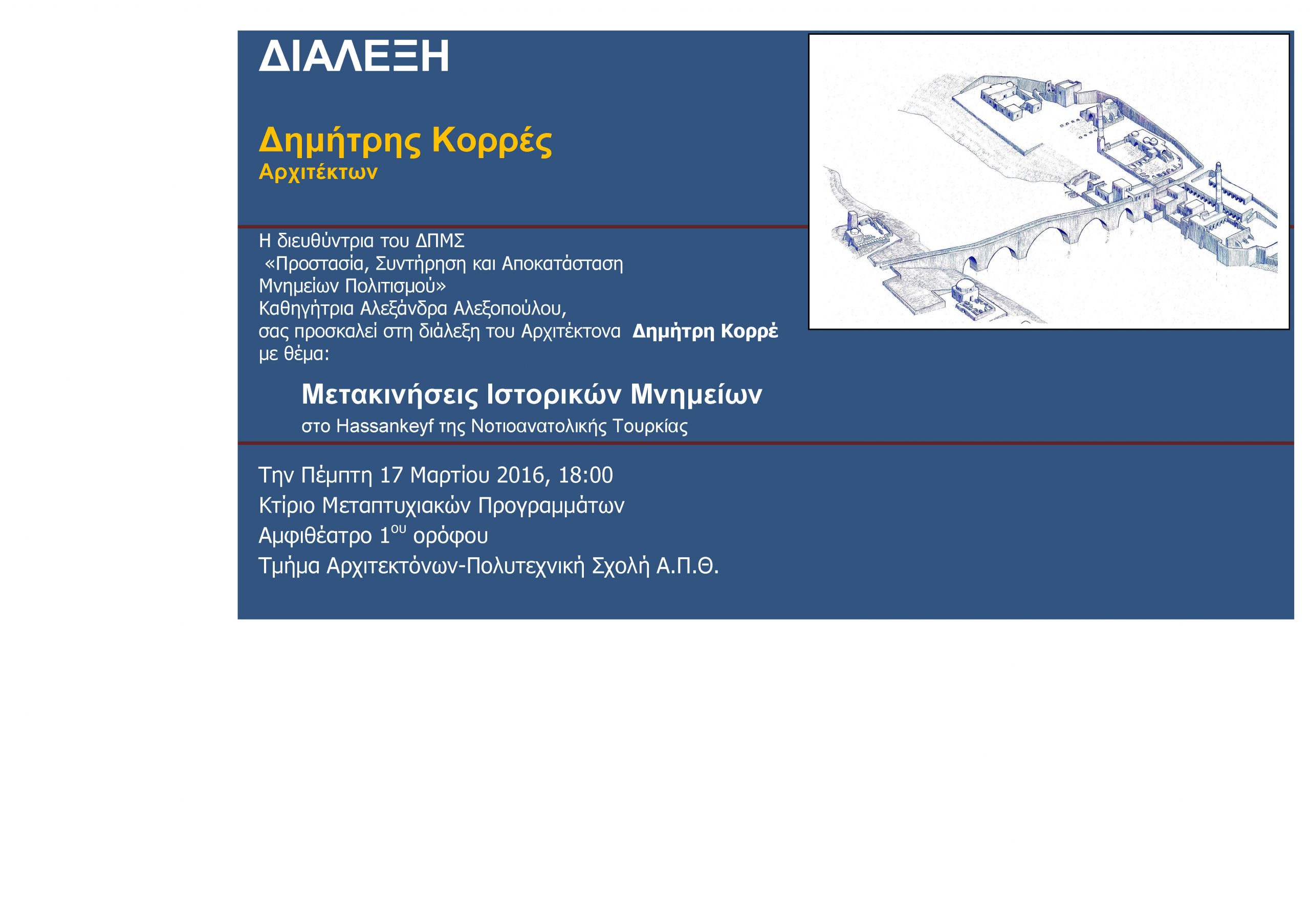 σας προσκαλεί στη διάλεξη του Αρχιτέκτονα Δημήτρη Κορρέ με θέμα: