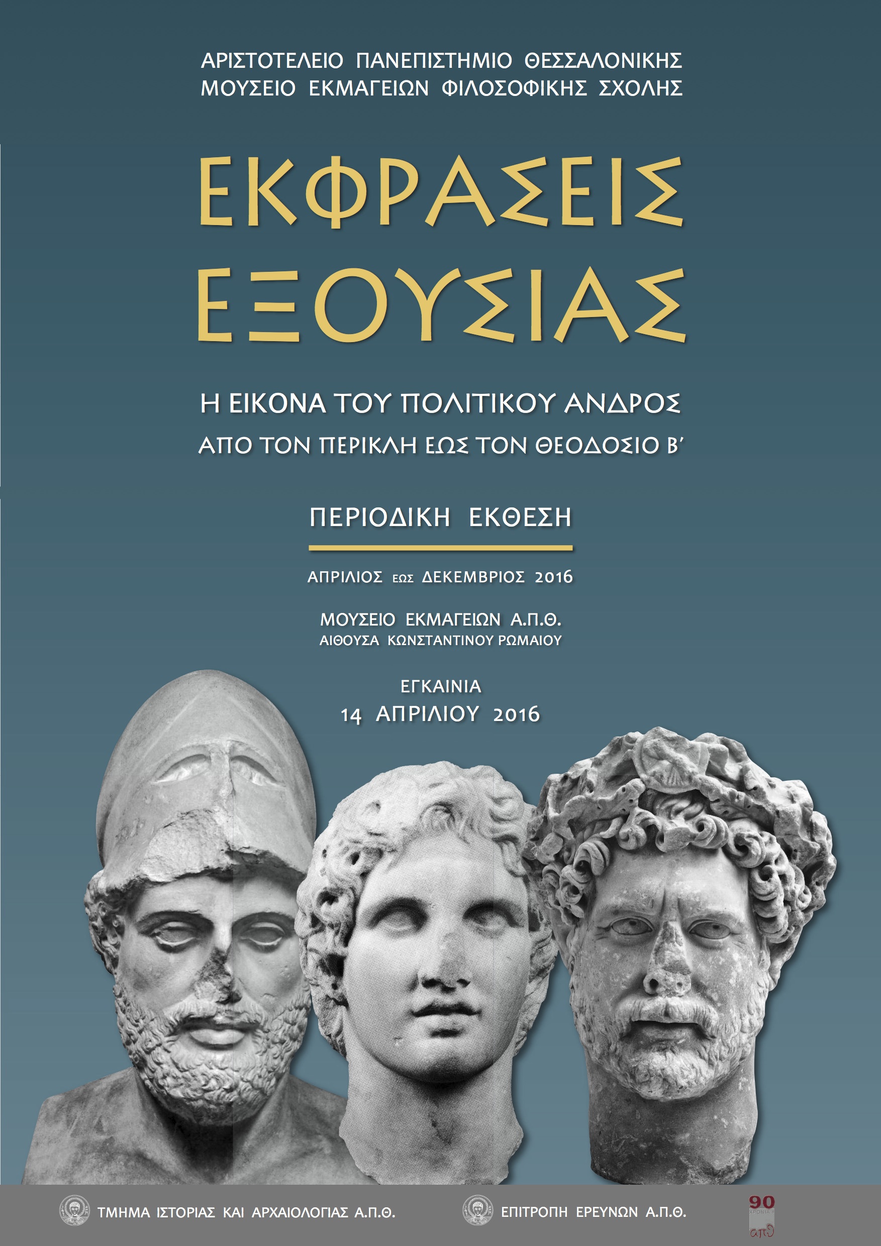 Το Τμήμα Ιστορίας και Αρχαιολογίας διοργανώνει Έκθεση με τίτλο «Εκφράσεις Εξουσίας. Η εικόνα του πολιτικού ανδρός από τον Περικλή ως τον Θεοδόσιο Β΄».