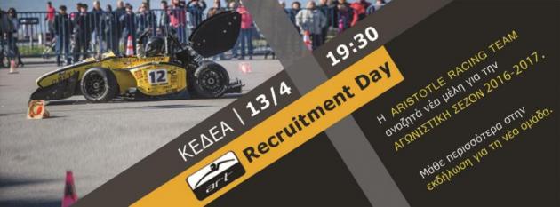 Η Aristotle Racing Team (ART) σας καλεί να δηλώσετε ενδιαφέρον για τη συμμετοχή σας στην ανανεωμένη ομάδα για τη σεζόν 2016-2017. Η εκδήλωση θα λάβει χώρα την Τετάρτη 13 Απριλίου και ώρα 7.30 μμ. στο αμφιθέατρο I του ΚΕ.Δ.Ε.Α. (Κόκκινο κτίριο πάνω από τη Φοιτητική Λέσχη).