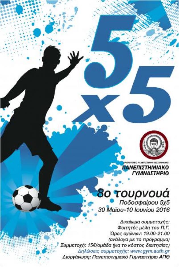 Το Πανεπιστημιακό Γυμναστήριο διοργανώνει για 8η συνεχόμενη χρονιά τουρνουά μίνι ποδοσφαίρου (5Χ5) για φοιτητές του ΑΠΘ