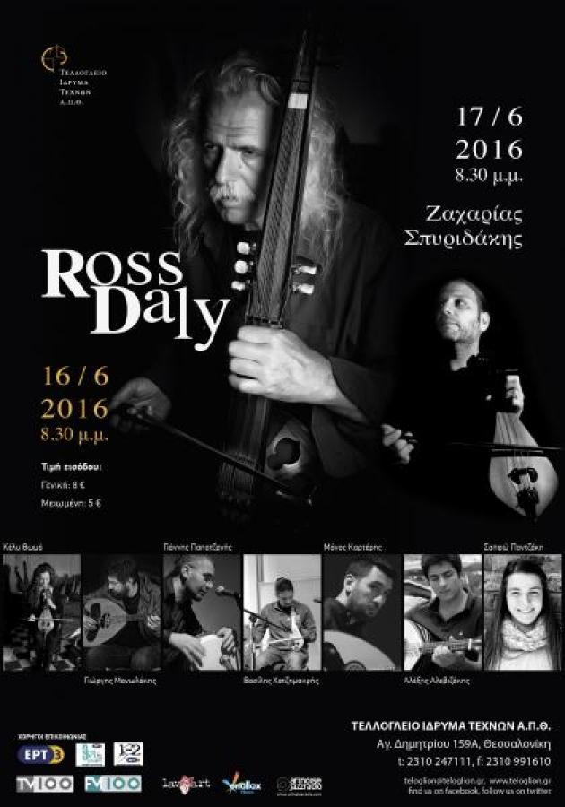 Δεξιοτέχνης πολλών μουσικών οργάνων, ο Ross Daly έχει συμπράξει με μεγάλους μουσικούς από όλο τον κόσμο ακολουθώντας τις ανατολικές μουσικές παραδόσεις και παράλληλα εξερευνώντας νέες φόρμες και τον δημιουργικό αυτοσχεδιασμό. Εκτός από κρητική λύρα παίζει επίσης αφγανικό ραμπάμπ, λαούτο, πολίτικη λύρα, σαράνγκι, ούτι, σάζι και ταμπούρ. Στη σκηνή θα τον συνοδεύσουν οι συνεργάτες του, Κέλυ Θωμά, Γιάννης Παπατζανής και ο Γιώργης Μανωλάκης.