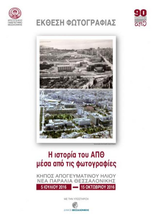 “Η ιστορία του ΑΠΘ μέσα από τις φωτογραφίες” είναι το θέμα της Έκθεσης Φωτογραφίας που θα πραγματοποιηθεί στο γυάλινο περίπτερο του Κήπου του Απογευματινού Ήλιου, στη Νέα Παραλία Θεσσαλονίκης, με αφορμή τη συμπλήρωση 90 χρόνων από την ίδρυση του ΑΠΘ.