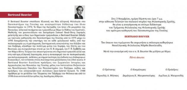 Μετά την αναγόρευσή του ο κ. Β. Bouvier θα μιλήσει με θέμα: