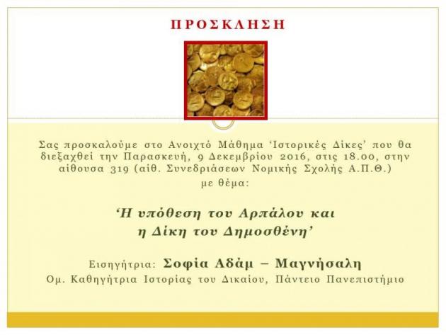 Χώρος: Αίθουσα 319 (Αίθουσα Συνεδριάσεων της Νομικής Σχολής)