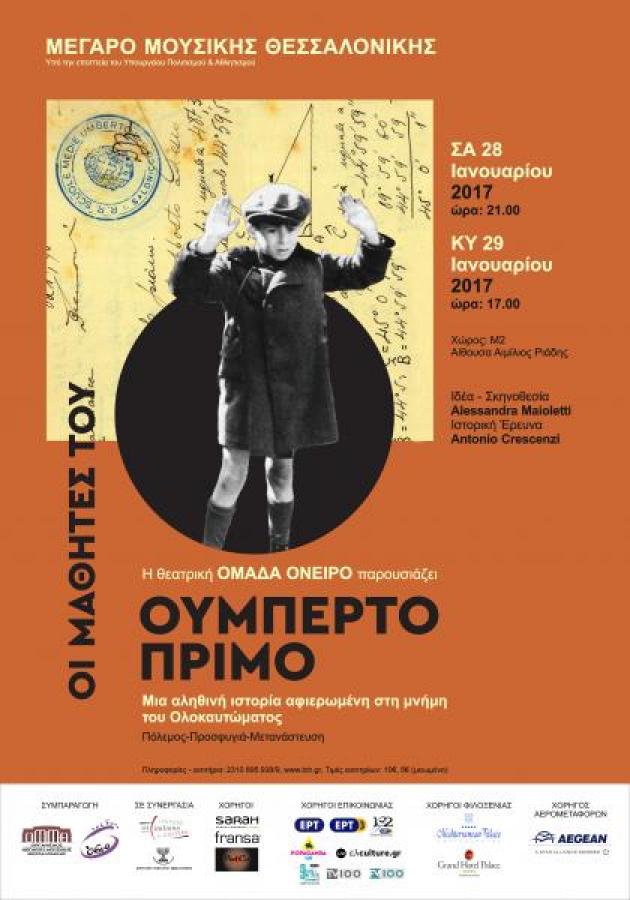 H ΟΜΑΔΑ ΟΝΕΙΡΟ, με τη συνεργασία του Ιταλικού Μορφωτικού Ινστιτούτου και της Ισραηλιτικής Κοινότητας Θεσσαλονίκης, παρουσιάζει τη θεατρική παράσταση