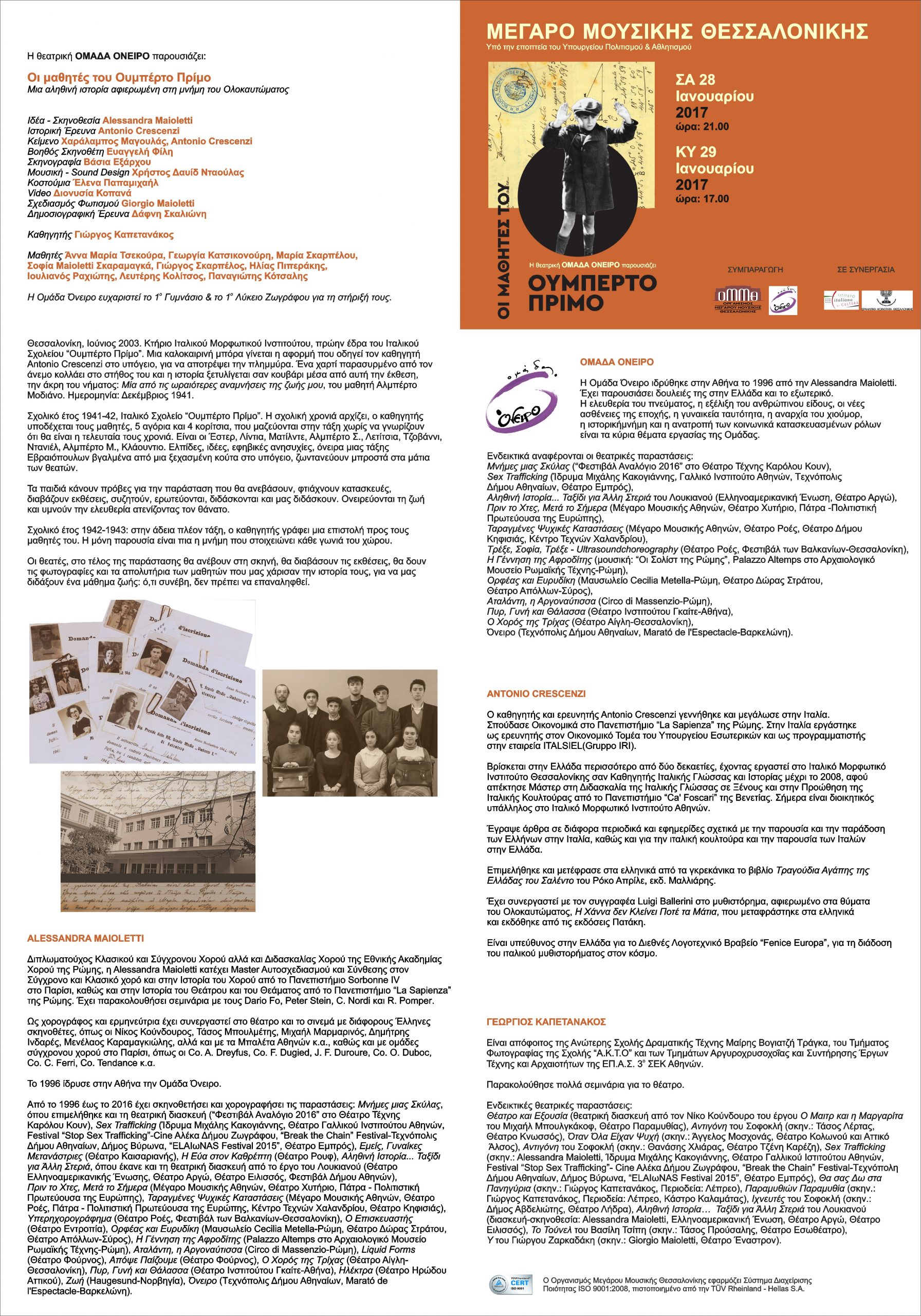 Μαθητές: Άννα Μαρία Τσεκούρα, Γεωργία Κατσικονούρη, Mαρία Σκαρπέλου, Σοφία Μaioletti Σκαραμαγκά, Γιώργος Σκαρπέλος, Ηλίας Πιπεράκης, Ιουλιανός Ραχιώτης, Λευτέρης Κολίτσος, Παναγιώτης Κότσαλης