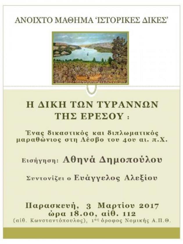 Ανοιχτό Μάθημα ΙΣΤΟΡΙΚΕΣ ΔΙΚΕΣ: ‘H Δίκη των τυράννων της Ερεσού’