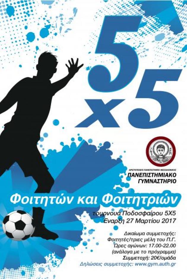 Το Πανεπιστημιακό Γυμναστήριο διοργανώνει τουρνουά Ποδοσφαίρου 5Χ5 για φοιτητές και φοιτήτριες, μέλη του ΠΓ ΑΠΘ.