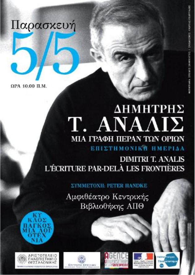 Το Τμήμα Γαλλικής Γλώσσας και Φιλολογίας και το Μ.Δ.Ε. με ειδίκευση «Μεταφρασεολογία – Μετάφραση Λογοτεχνίας και Επιστημών του Ανθρώπου» οργανώνουν ημερίδα αφιερωμένη στον γαλλόφωνο Έλληνα ποιητή, συγγραφέα, μεταφραστή και πολιτικό επιστήμονα Δημήτρη Τ. Άναλι. Στην ημερίδα συμμετέχει ο Πέτερ Χάντκε, φίλος και μεταφραστής του Δ. Άναλι στα γερμανικά.