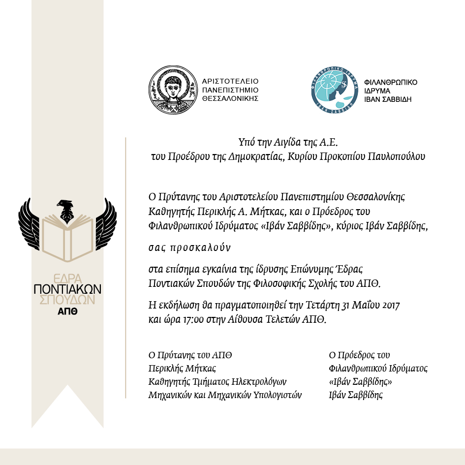 και ώρα 17:00 στην Αίθουσα Τελετών ΑΠΘ.